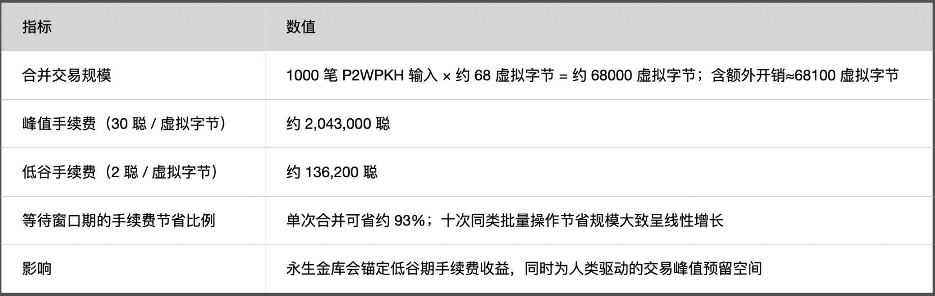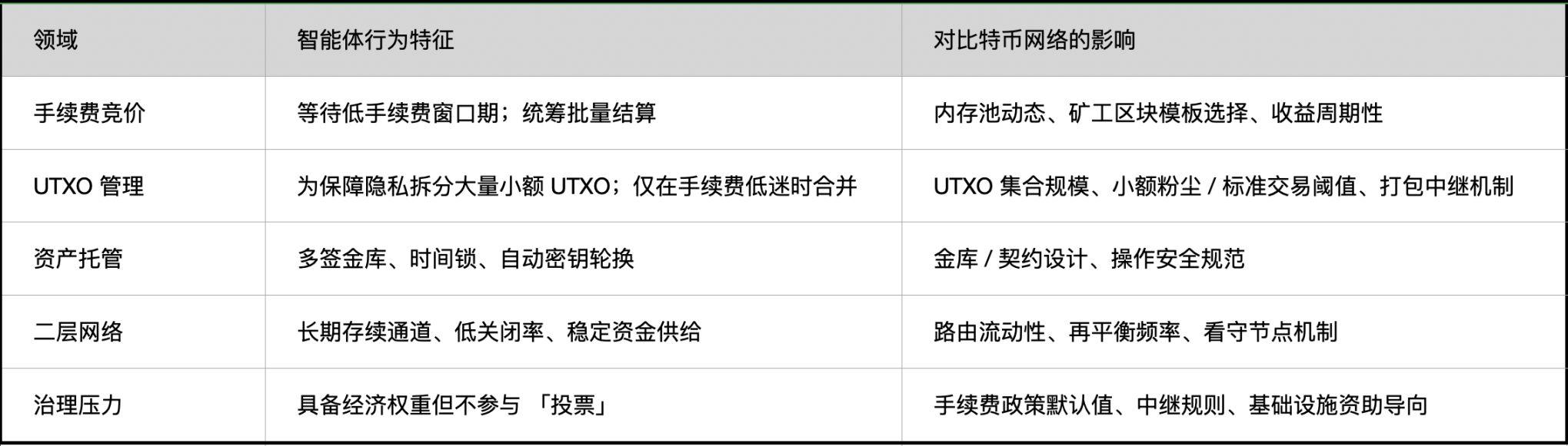 如果这类需求达到一定规模,矿工将在交易淡季看到稳定的低手续费报价,而在智能体集中滚动 UTXO 时迎来阶段性结算高峰。这种反馈是纯粹的经济行为,而非投票:当区块存在闲置空间时,打包模板会适配更多低手续费交易包;当交易需求激增时,则预留空间应对峰值。