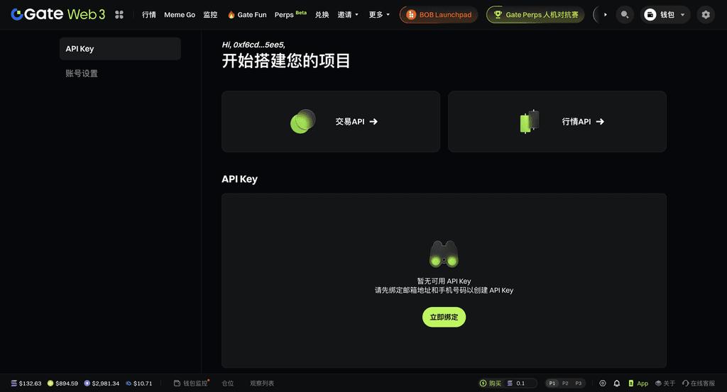 绑定完成后,您的账户安全等级将提升,可更安全地管理 API Key 并使用平台服务。