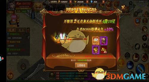 到此新服的限时奖励活动就齐全了,总结一下:3只萌宠,一个爆率称号,一个官印,一个极品神兵。都是非常稀有的道具且战力加成很高,获得的难度也较低,算是相当良心了。帝王之路,由此迈出第一步~!
