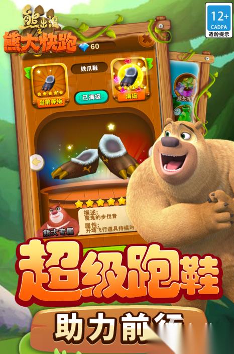 这是一款改编自热门动画熊出没的跑酷手游,角色用的是熊大、熊二、光头强这些原版形象,还配了动画原版配音。3D技术复刻的森林场景很清新,郁郁葱葱的大树配上鲜艳花草,让整体的氛围轻松诙谐。游戏操作门槛很低,上下滑屏幕控制跳跃滑行,躲障碍收金币就行,但后期障碍设置还是挺有挑战性的。养成玩法比较丰富,商店里能解锁美熊王、太空熊这些特色装扮。