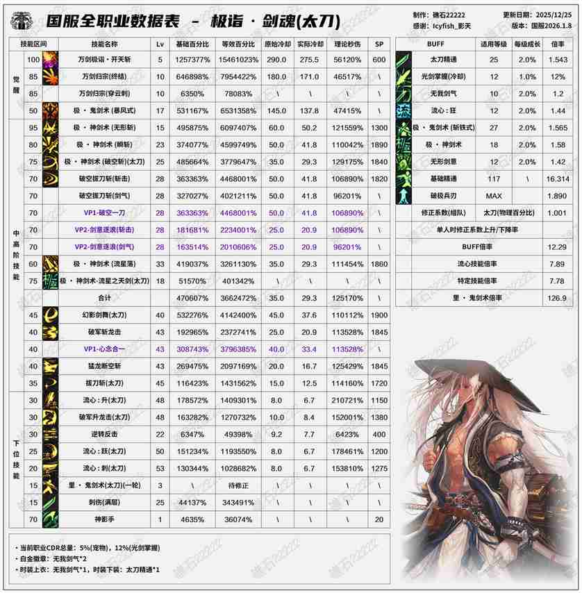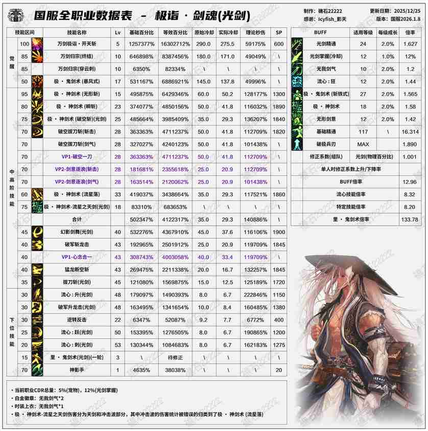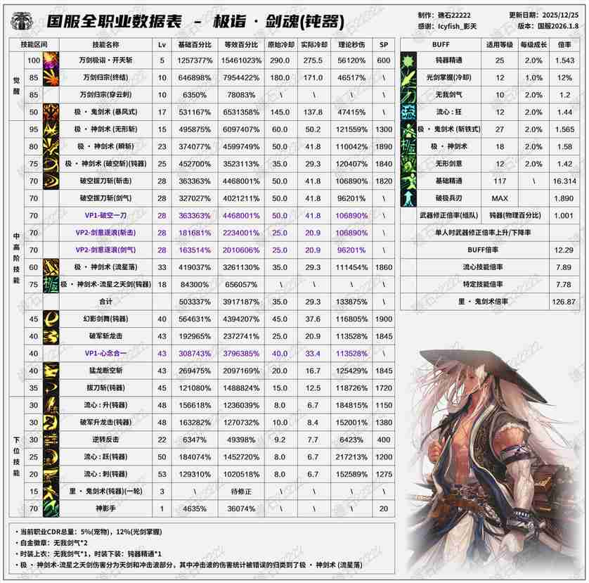 DNF2026会上线新团本狄瑞吉攻坚战,届时会同步进行职业改版,这次改版对所有职业进行了平衡,那么DNF2026剑魂技能数据是什么?下面就给大家带来DNF2026剑魂技能数据表。