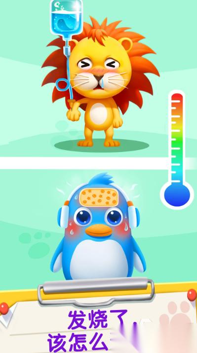 大家在这里当了一回小医生,给生病的小动物看病,小动物可能会肚子疼也会发烧,大家要帮助他们检查。游戏里的医院做的和真实的很相似,这可以让孩子慢慢的去熟悉看病的过程,以后自己去看医生的时候也不再那么害怕,同时孩子也会明白,如果平时习惯不好,就可能会像这些小动物一样生病。通过扮演医生去照顾别的小朋友,会在不知不觉中变得更加有责任心,也会更愿意养成一个良好的生活习惯。