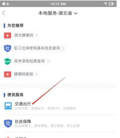 2、进入本地服务,点击交通出行。