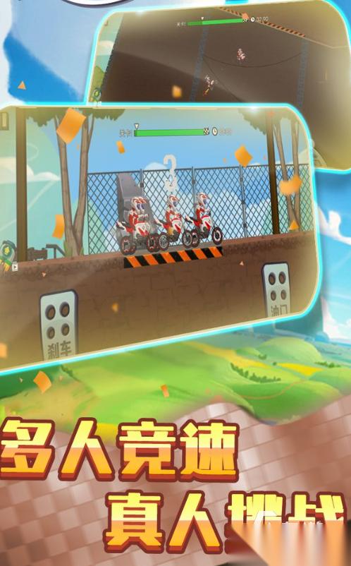 大家在这里不是一个人玩,而是和其他的玩家一起去体验。游戏里有很多卡通的头盔,大家可以随便选择一款。控制方式也非常的简单,通过踩油门让车子加速,踩刹车让车子减速,骑着车在各种地图里不断的往前冲。游戏里还有很多道具,大家在骑车的时候可以用这些道具攻击其他的玩家,整体玩下来和其他的玩家一起去竞技比赛,加上这些特殊的设计,会带来不一样的体验。