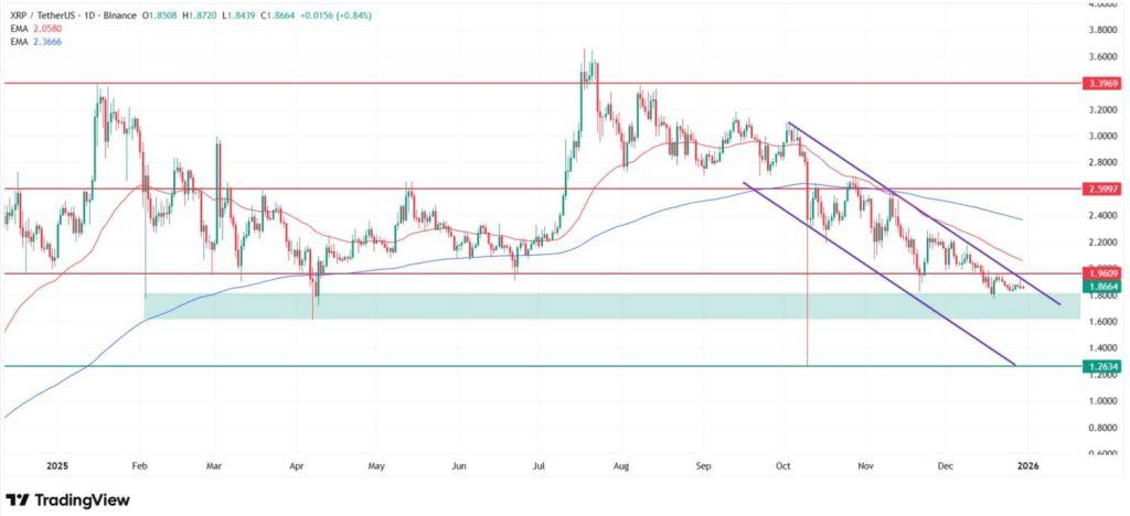 瑞波币 XRP 0.91%价格 1.865 美元ยังคงรูปแบบจุดสูงสุดที่ต่ำลง ซึ่งสะท้อนโครงสร้างขาล งและการทำผลงานด้อยกว่า比特币和以太坊