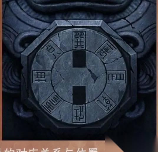 3.根据亭子窗口的纸上文字和左侧狮子调整完成后的样子,得到物象与八卦的对应关系。