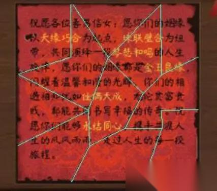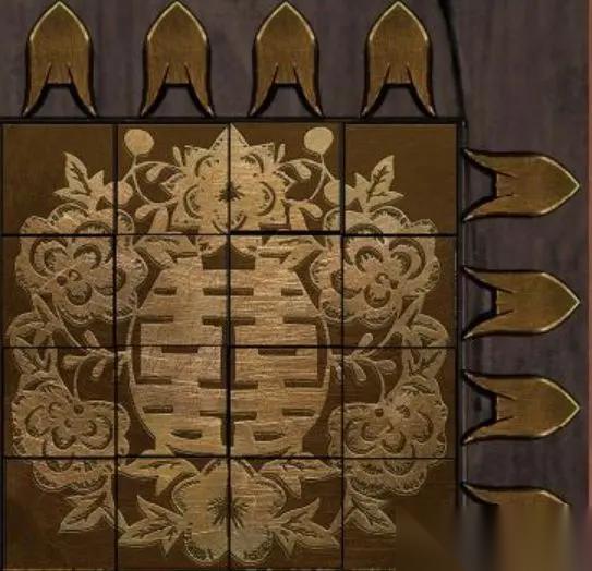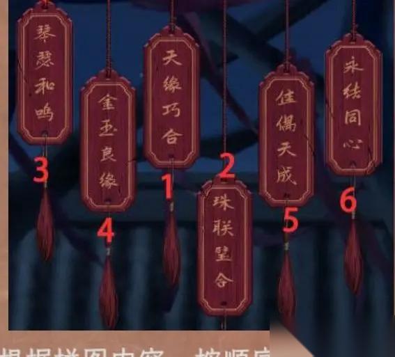 8.点击亭子中的柜子,结合大门两侧的对联,完成柜子左侧机关,左为喜成连理,右为永结同心。