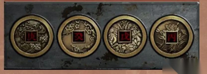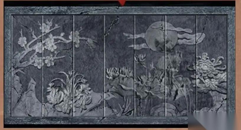 12.完成地上石槽的拼图,结果如图所示。完成拼图后,拼图中的花与石槽中的字相对应。根据石槽拼图和石槽中的字的对应关系,完成盒子的机关,答案如图所示。