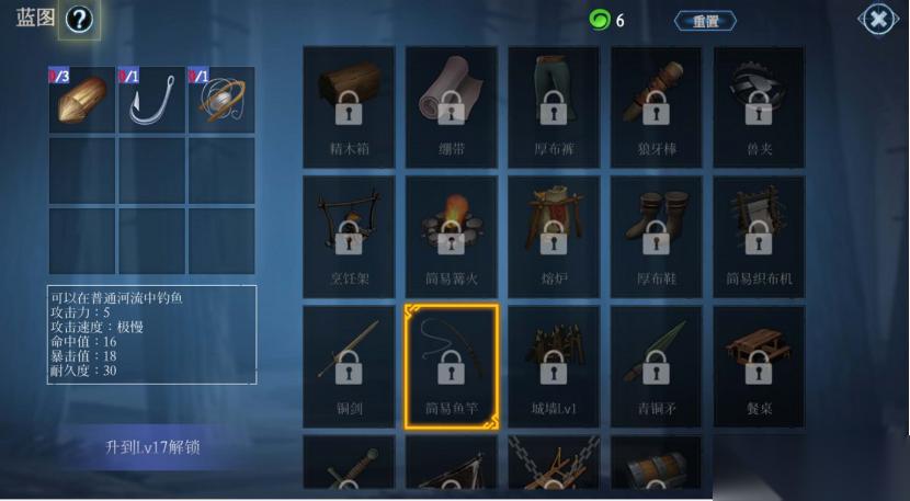 手游网 2026年01月02日:在冰原守卫者的酷寒世界里,钓鱼不仅是获取食物资源的重要方式,偶尔还能收获意外道具,而想要开启钓鱼玩法,核心前提就是亲手制作一把简易钓鱼竿。目前游戏中仅提供简易钓鱼竿这一种垂钓工具,获取方式有两种,一是花费200钻石在商场购买,二是自行制作,从性价比来看,显然亲手制作更划算,既不用消耗珍贵钻石,还能熟悉资源获取流程。制作简易钓鱼竿有明确的等级门槛,角色必须达到17级才能解锁制作配方,等级未达标前,即便提前收集好材料也无法合成,所以前期不妨专注升级,为制作钓鱼竿做好准备。
