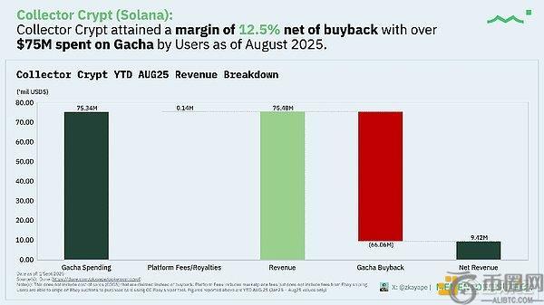 该平台年初至今Gacha消费额约7530万美元,在约6610万美元回购及适度平台/版权费支出后,净利润率约12.5%。相较于Courtyard的较低净利润率暗示其可能采取更激进回购策略、不同费用结构或更高库存成,大部分收入已嵌入gacha机制中。