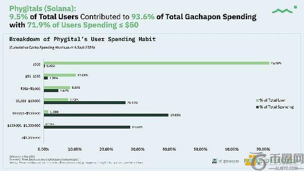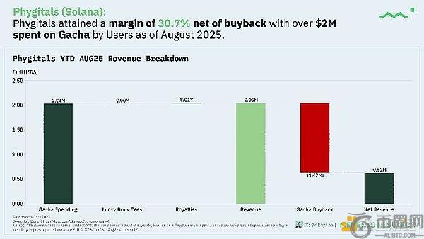 Phygitals平台数据显示71.9%的用户消费≤50美元,但约9.5%的用户贡献了约93.6%的消费额。年初至今gacha消费额约200万美元,在约142万美元回购后净利润率约30.7%;注意:多数卡牌仅在申领时才进行采购。