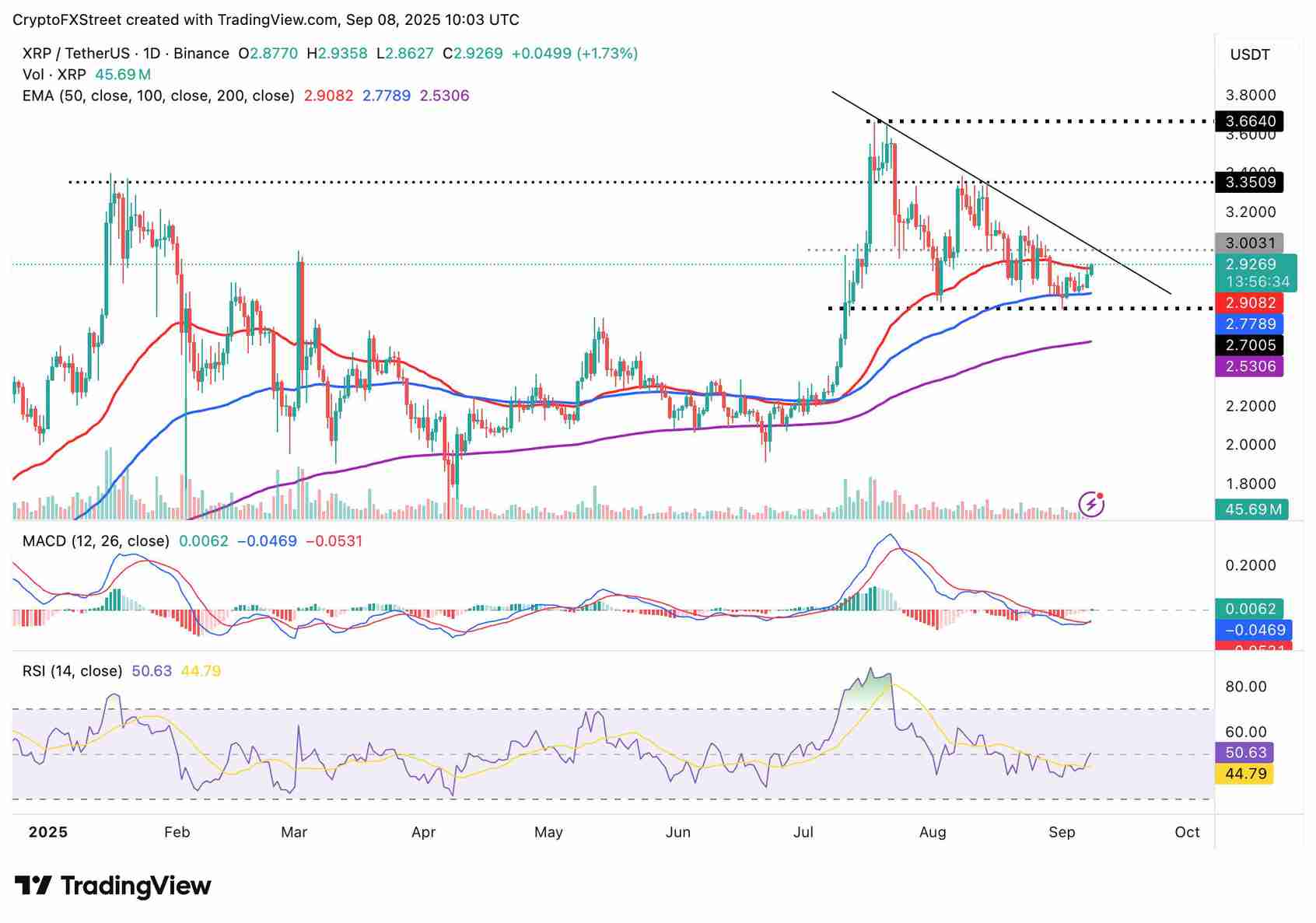 • XRP 延续复苏势头,有望突破 3.00 美元的关键水平。