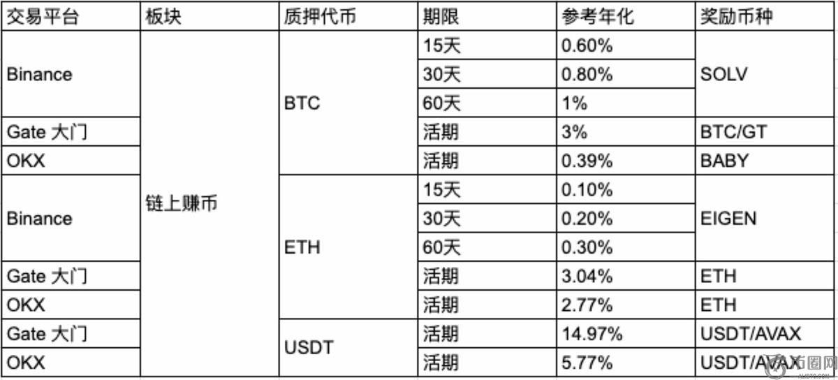 从比特币(BTC)到USDT:主流平台链上赚币产品收益结构对比