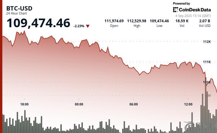 这一最大的加密货币在 24 小时内下跌 2.2%,至 109,500 美元,抹去了周末低点 107,000 美元以来一半的涨幅,周三突破了 112,600 美元。以太币(ETH),索拉纳的SOL(SOL)以及 Cardano 的 ADA(美国残疾人法案)过去 24 小时内均下跌超过 3%。