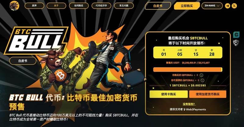 一个与比特币挂钩的预售项目 Bitcoin BULL($BTCBULL) 也受到热烈追捧。这枚新兴代币近日进入预售最终倒数阶段,预计将于7月7日正式上市。原本计划于6月底结束的预售,因市场反应过热而延长至本周,至今已吸引超过800万美元的资金进场,成为今夏最受瞩目的比特币相关预售案之一。