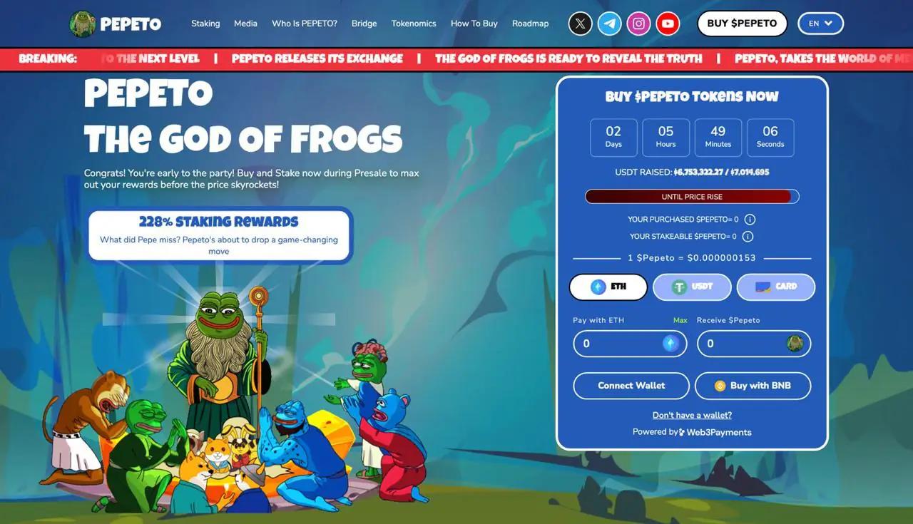 错过了早期的柴犬币或狗狗币?Pepeto 看起来就是你承诺下次不会错过的那个机会。当前价格为 0.000000153 美元,是本阶段的最低价位,而动量表明犹豫不决是有代价的。