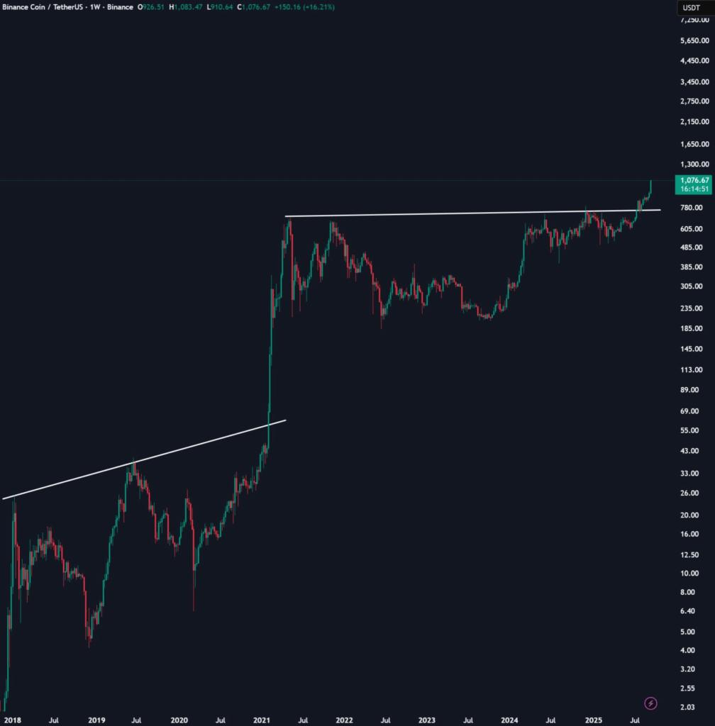 一位分析师对 BNB 价格做出了大胆预测,暗示到 2025 年底 BNB 价格可能上涨至 2,000 美元。