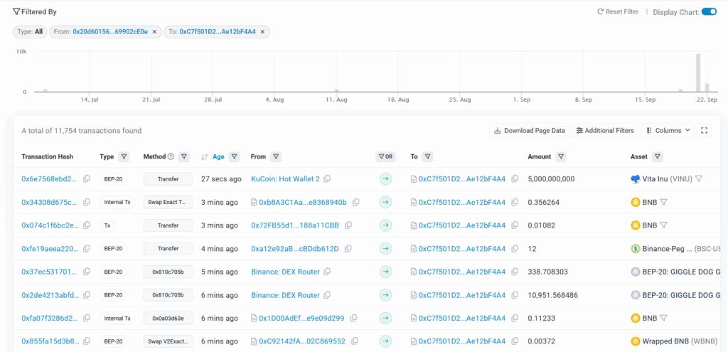 BscScan 的链上洞察表明,自 Giggle Academy 成立以来,Giggle Fund 已负责向其发送的近 10,000 笔交易中的 967 笔。