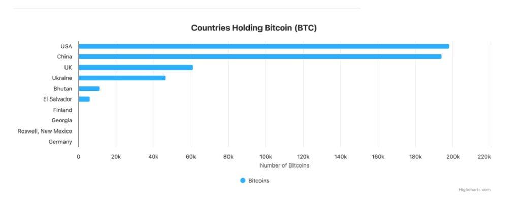 政府持有是另一个增长领域。根据 Bitbo 的数据,美国目前持有 198,012 BTC,其次是中国(194,000 BTC)和英国(61,245 BTC)。