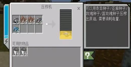 我的世界天启无尽幻境原油获得方法是(奇异种子+亚麻种子+玫瑰种子+蓝玫瑰种子)+压榨机=原油