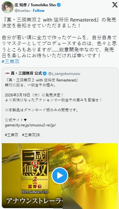 东京电玩展期间,Omega Force品牌长兼《真·三国无双 起源》制作人庄知彦在接受媒体联访时表示,他个人原本对复刻或重制作品持谨慎态度,此次重制完全是响应玩家的强烈呼声。他强调,项目正以“原汁原味重现经典”为方向进行开发,玩家记忆中颇具挑战的弓兵阵、以及吕布的强大战力都将得以完整保留。