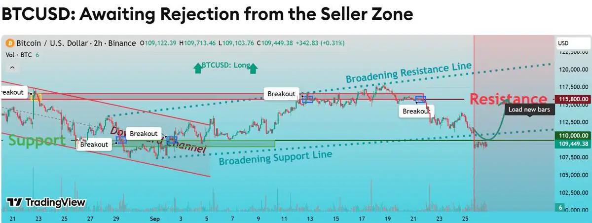 比特币价格目前位于 109,300 美元附近,24 小时内下跌约 2%,且仍在震荡,交易员正在等待宏观线索。多头坚守 108,000 美元至 109,000 美元的买入区间。如果比特币价格突破 111,500 美元并守住,许多人预计它将重新测试 115,000 美元,甚至可能更高。