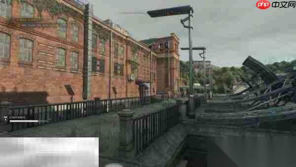 和工头对话后,下一步是进入主建筑。沿着任务指引来到水边的大楼,主要入口是一个敞开的窗户,周围有可以攀爬的壁架。