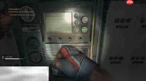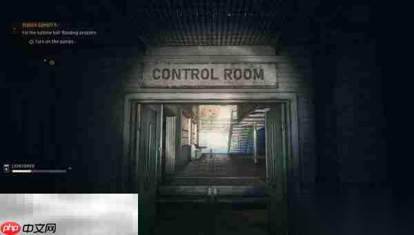 去控制台:关完两个阀回到岸上,任务更新。从一层的控制室前往目标点。